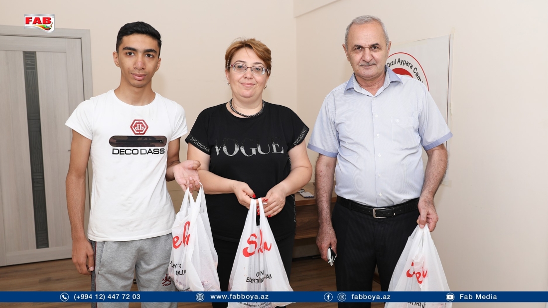 13.07.2019- cu il tarixində “FAB Boya və Kimya Sənayesi” MMC aztəminatlı ailələrə ərzaq yardımı göstərib. “Təmiz Dünya” Qadınlara Yardım İctimai Birliyinin nəzdindəki sığınacağın sakinlərinə, Azərbaycan Qızıl Aypara Cəmiyyətinin Abşeron və Binəqədi Rayon Bölmələrinin üzvlərinə, ümumilikdə 400-ə yaxın ailəyə ət məhsulu paylanılıb.