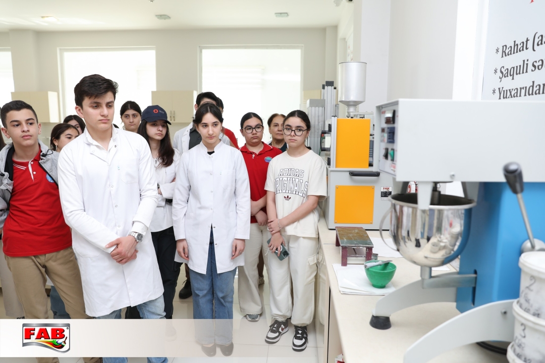 05.04.2024-cü il tarixində Xəzər Universiteti Dünya Məktəbinin bir qrup müəllim və şagird heyəti üçün FAB Şirkətlər Qrupunun istehsal müəssisələrində gəzinti təşkil edildi. Məktəblilər məhsullarımızın hazırlanma prosesi, laboratoriyalarda aparılan təcrübələrlə tanış oldular. FAB Akademiyasının nəzdindəki Boya emalatxanasında müxtəlif rəngdə boya hazırlama sınağı etdilər. Sonda iştirakçılara şirkətimiz adından simvolik hədiyyələr təqdim edildi. Xatirə şəkli çəkdirildi. Ekskursiya xoş əhvali-ruhiyyədə başa çatdı.
