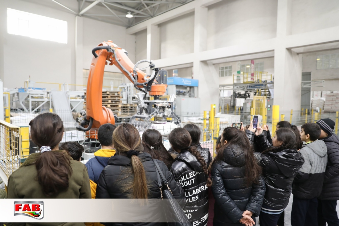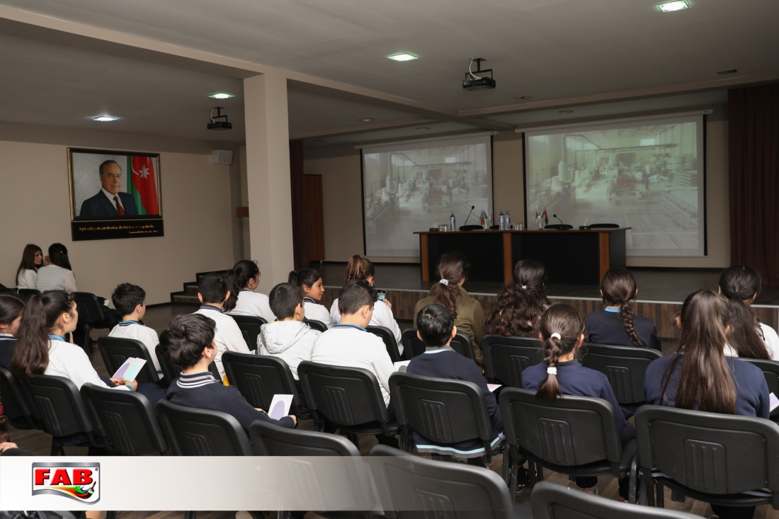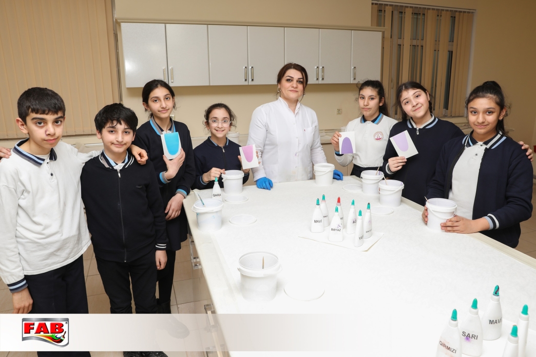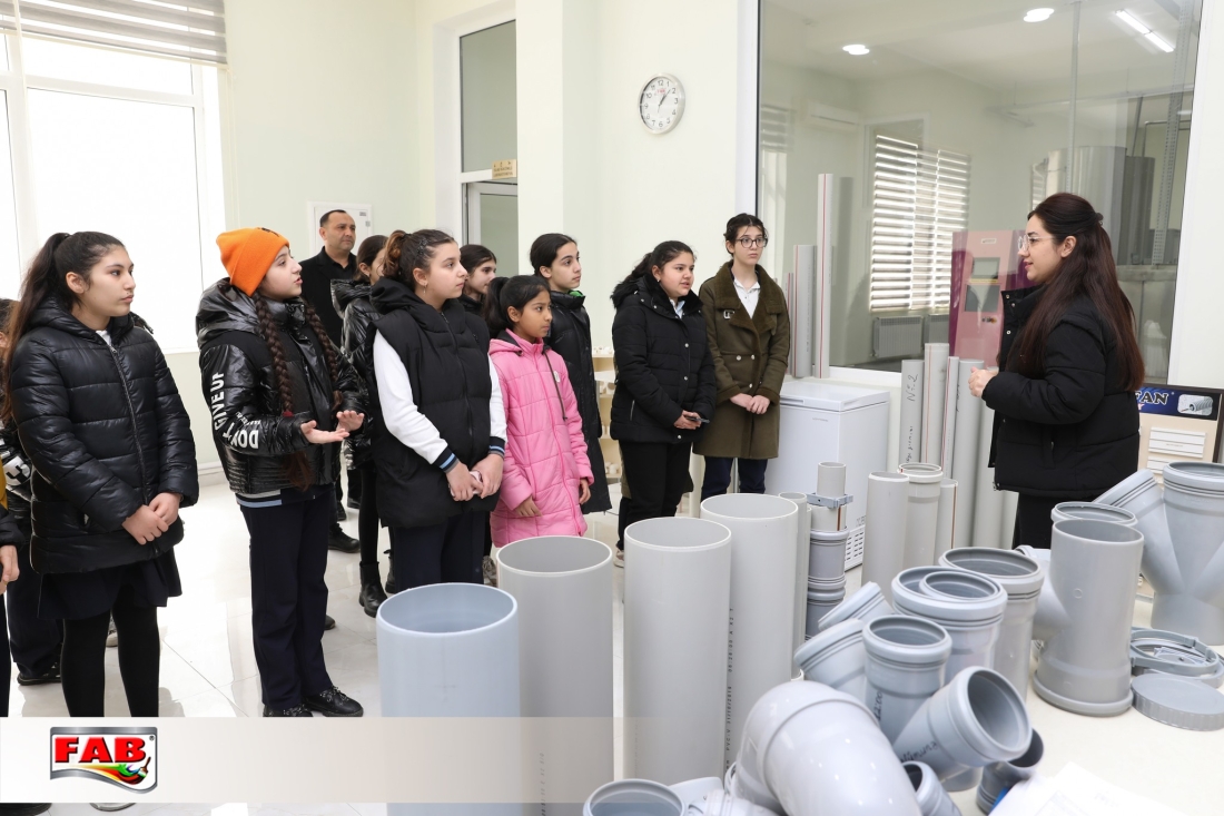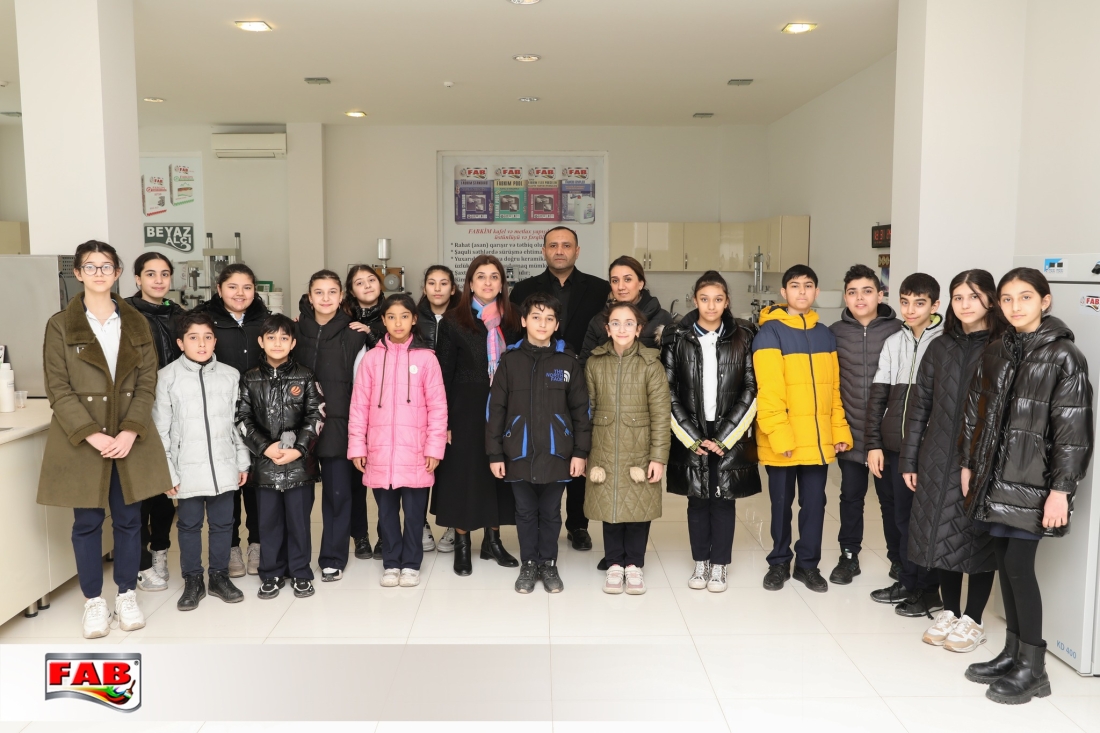 12.03.2024-cü il tarixində Bakı şəhəri Binəqədi rayonu 143 №-li tam orta məktəbin bir qrup 7-ci sinif şagirdi FAB Şirkətlər Qrupunun istehsal müəssisələrində oldular. Gəzintə zamanı şagirdlər məhsulların hazırlanma prosesini izlədilər, FAB Akademiyasının nəzdindəki Keyfiyyətə nəzarət laboratoriyalarında görülən işlərlə bağlı məlumatlar öyrəndilər. Boya emalatxanasında rəng çeşidliliyi sınağını icra etdilər. Sonda ekskursiya iştirakçılarına şirkətimiz adndan simvolik hədiyyələr təqdim edildi. Xatirə şəkli çəkdirildi.
