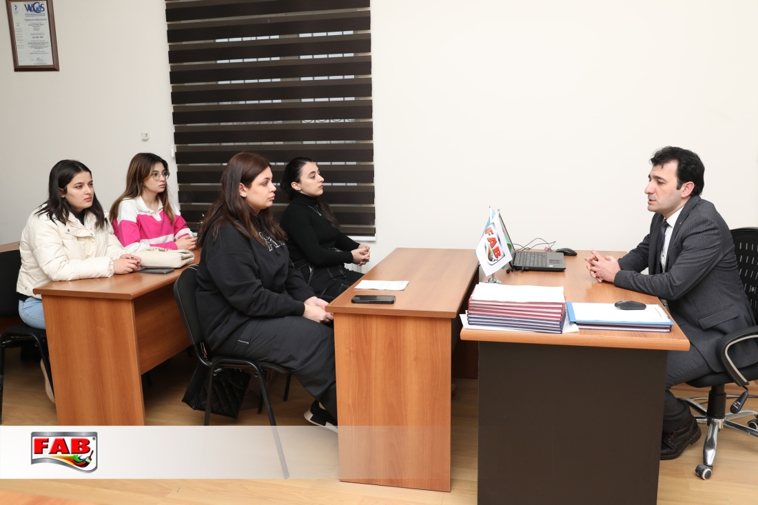 FAB Şirkətlər Qrupunda Bakı Mühəndislik Universitetinin bir qrup tələbəsi üçün təcrübə proqramını təşkil olunub. Proqram çərçivəsində iştirakçılara şirkətimizin fəaliyyət sahələri haqqında məlumatlar verilib. Təcrübə proqramı tələbələrin təhsil aldıqları ixtisaslar üzrə şirkətimizin müxtəlif faəliyyət sahələrində praktiki bacarıqlara yiyələnməsinə, biliklərin təkmilləşdirməsinə imkan yaradır.