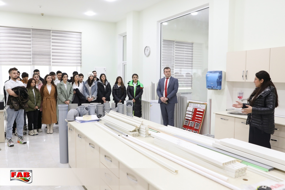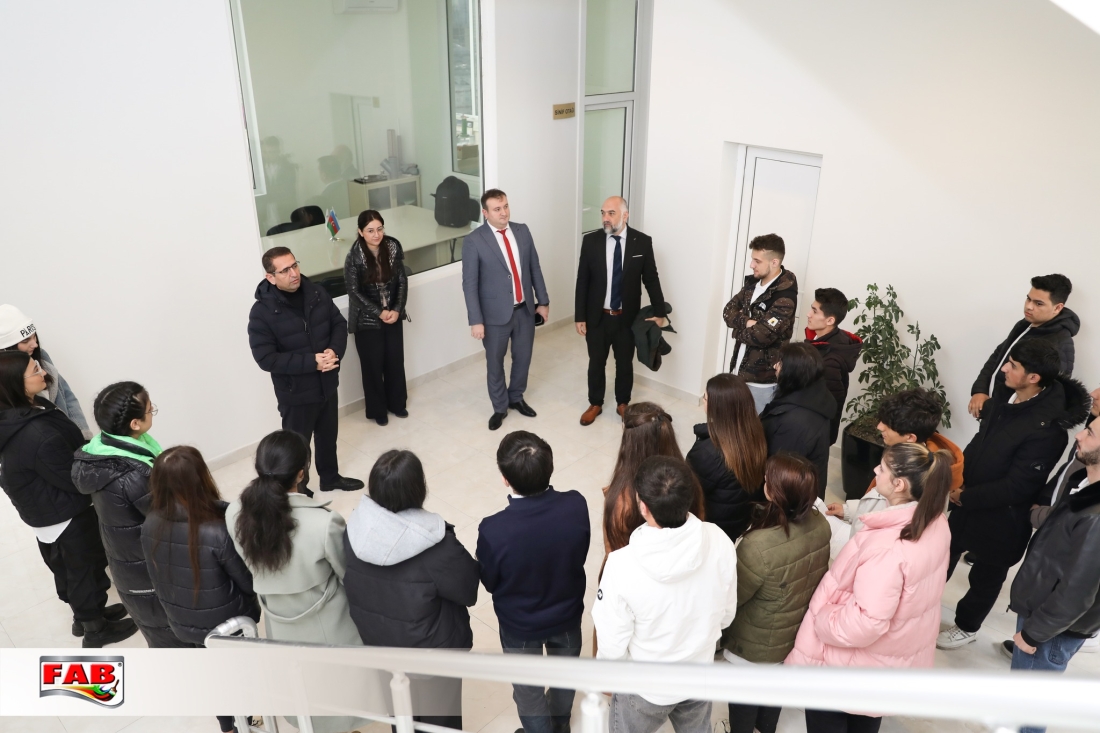 16.02.2024-cü il tarixində İqtisadi Zonaların İnkişaf Agentiliyinin nəzdində Peşə Təhsil Mərkəzinin bir qrup tələbə və müəllim heyəti şirkətimizin istehsal sahələri ilə tanış oldular. Tələbələr FAB Akademiyasının nəzdindəki Keyfiyyətə Nəzarət Laboratoriyalarında aparılan sınaq və təcrübələri izlədilər. İstehsal prosesi ilə əyani şəkildə tanış oldular. Daha sonra ekskursiya iştirakçıları FAB Akademiyasının konfrans zalında FAB Şirkətlər Qrupunun fəaliyyətindən bəhs edən videomaterialı izlədilər. Sonda qonaqlara simvolik hədiyyələr təqdim olundu.