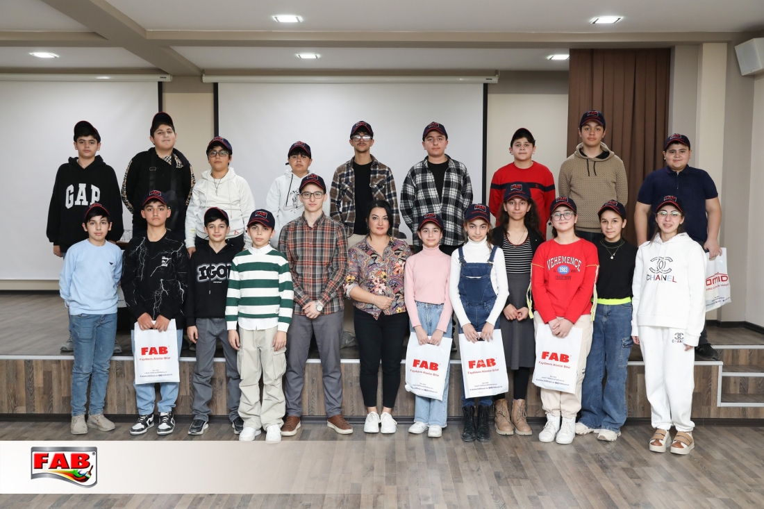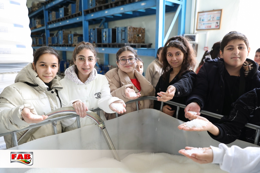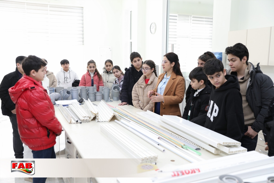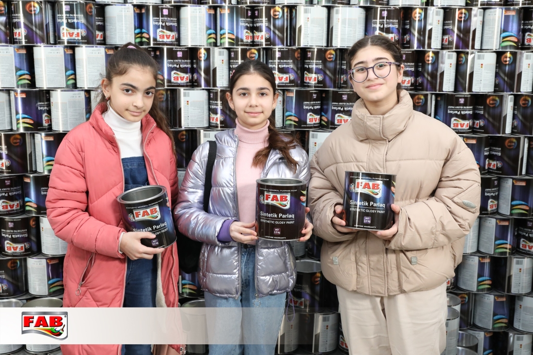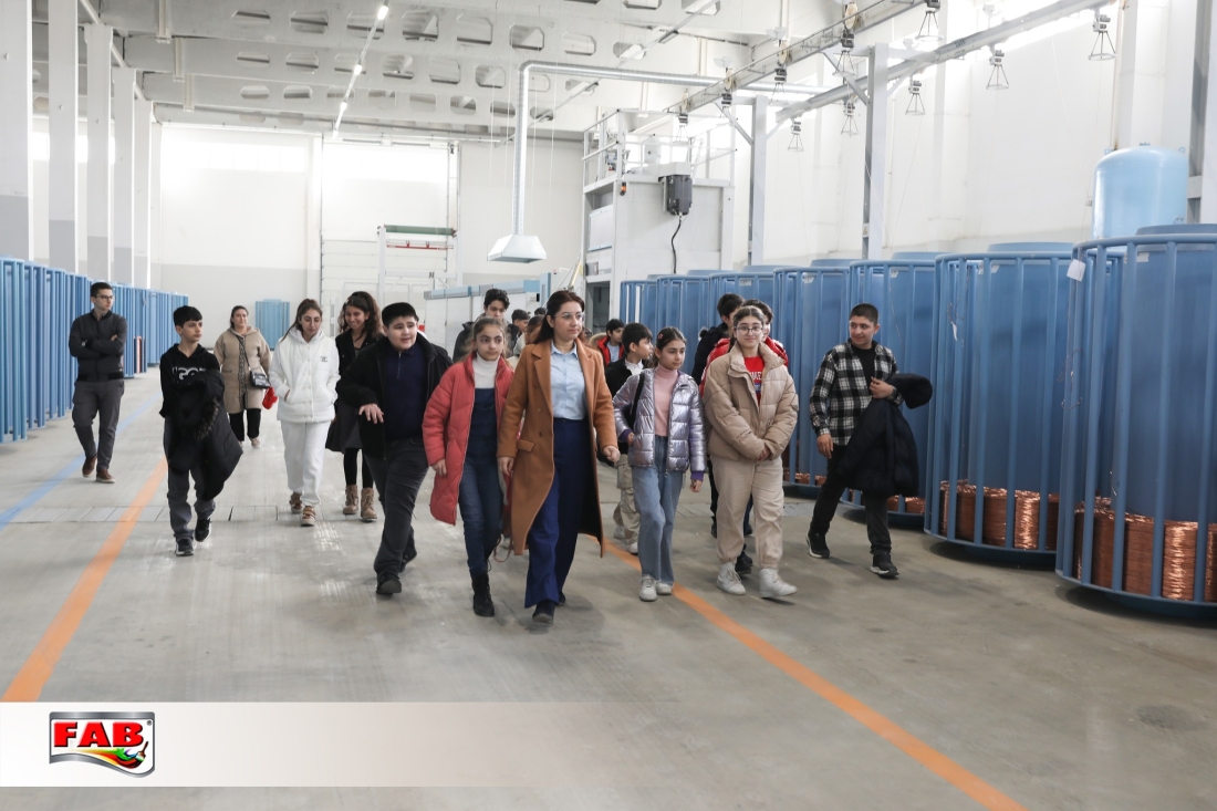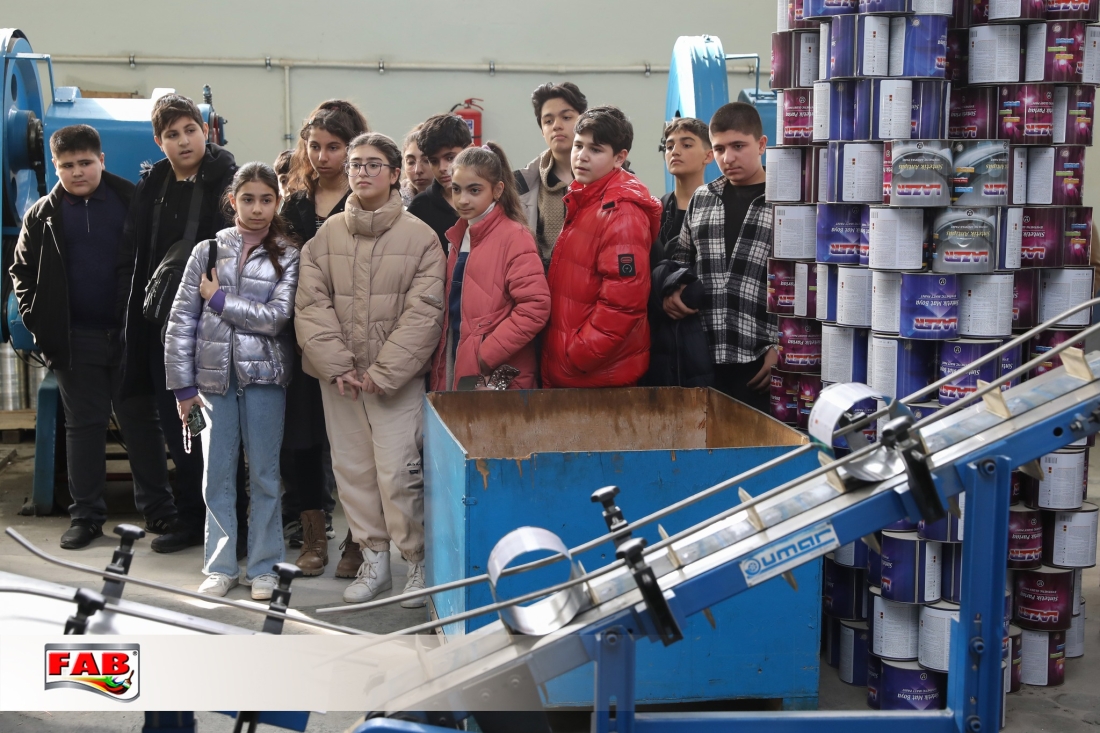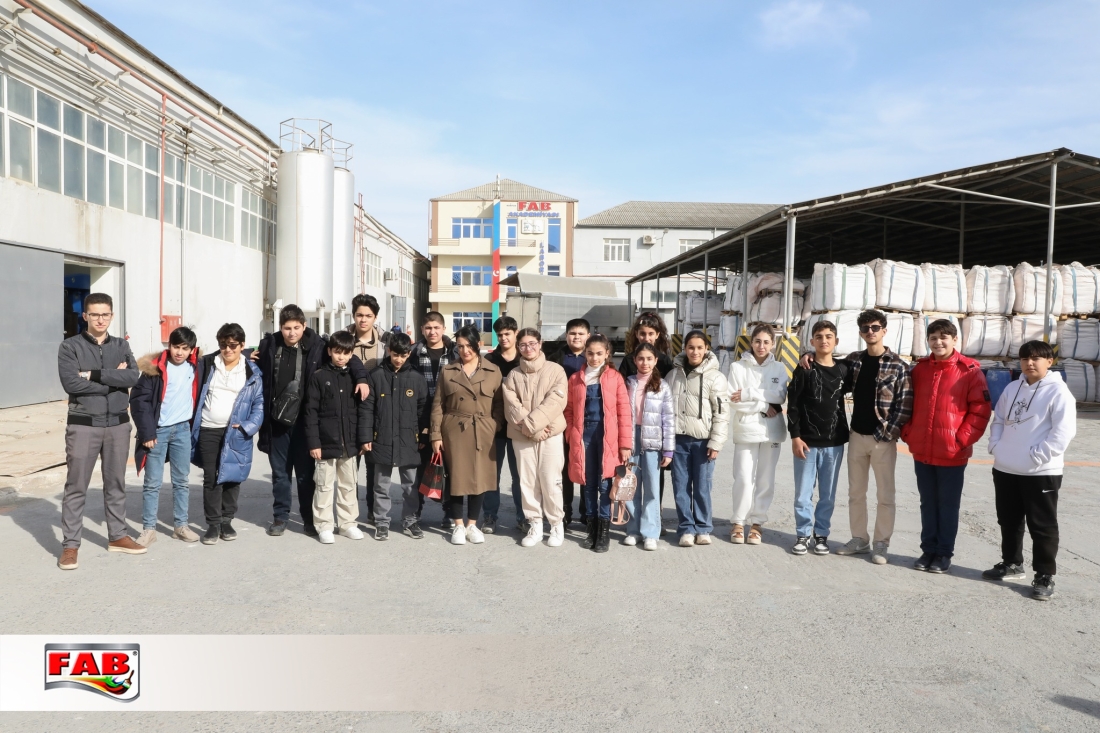 09.02.2024- cü il tarixində Azərbaycan Uşaq və Gənclərin Sülh Şəbəkəsi İctimai Birliyinin nəzdində fəaliyyət göstərən Liderlik məktəbinin şagirdləri FAB Şirkətlər Qrupunun istehsal müəssisələrində oldular. Gəzintə zamanı şagirdlər məhsulların hazırlanma prosesini izlədilər, FAB Akademiyasının nəzdindəki Keyfiyyətə nəzarət laboratoriyalarında görülən işlərlə bağlı məlumatlar öyrəndilər. Boya emalatxanasında rəng çeşidliliyi sınağını icra etdilər. Sonda ekskursiya iştirakçılarına şirkətimiz adndan simvolik hədiyyələr təqdim edildi. Xatirə şəkli çəkdirildi.