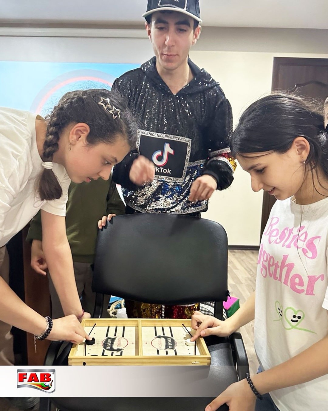 Ekskursiyanın ikinci mərhələsi FAB Akademiyasının konfrans zalında əyləncəli proqramla davam etdi. İnteraktiv oyunlar, hədiyyələr, şən musiqilər və sürprizlərlə dolu tədbir azyaşlı qonaqlarımızın sevincinə səbəb oldu. Daha sonra uşaqlar nahar süfrəsi arxasında bir araya gəldilər. Bu gəzinti uşaqlara sevinc bəxş etməklə yanaşı, onların gələcəyimizdəki yerini və dəyərini bir daha vurğuladı.