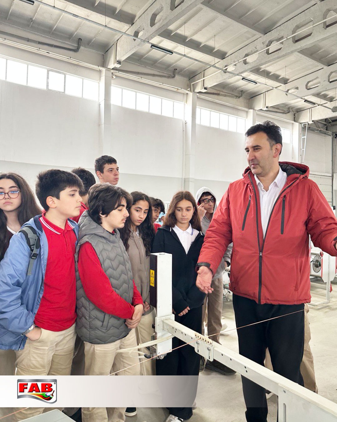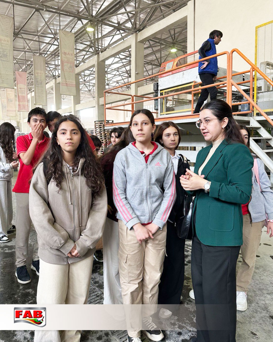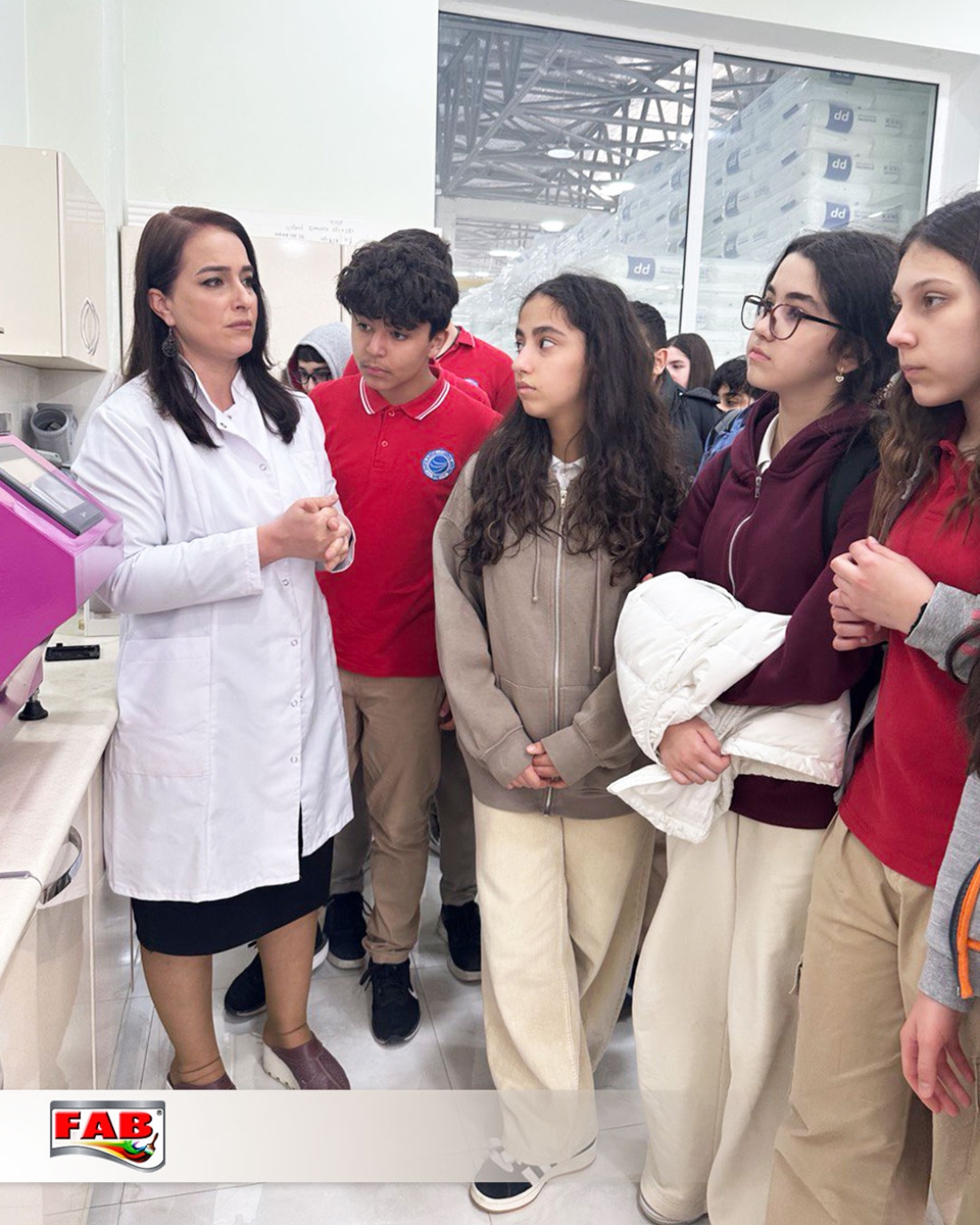 30.04.2025-ci il tarixində Xəzər Universiteti Dünya Məktəbinin bir qrup yeddinci sinif şagirdi üçün FAB Şirkətlər Qrupunun istehsal müəssisələrində ekskursiya təşkil edildi. Şagirdlər şirkətimizin istehsal sahələri ilə tanış oldular. Məhsulların hazırlanma prosesini yaxından izlədilər. Onlara FAB Akademiyasının keyfiyyətə nəzarət laboratoriyalarında aparılan sınaq və təcrübələr haqqında məlumatlar verildi.Sonda ekskursiya iştirakçılarına şirkətimiz adından simvolik hədiyyələr təqdim edildi. Xatirə şəkli çəkdirildi. Ekskursiya çay süfrəsi arxasında xoş əhvali-ruhiyyədə başa çatdı.